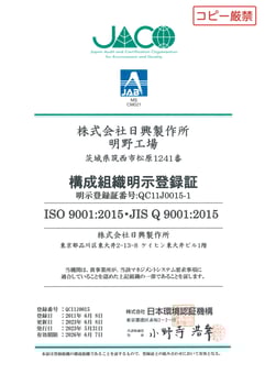 2011年6月にISO9001の認証を3事業所一斉取得、2017年6月には2015年度版へ移行し、